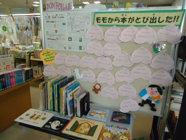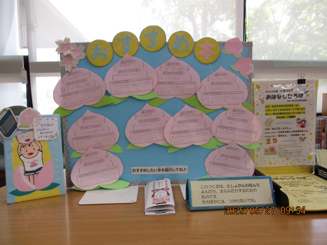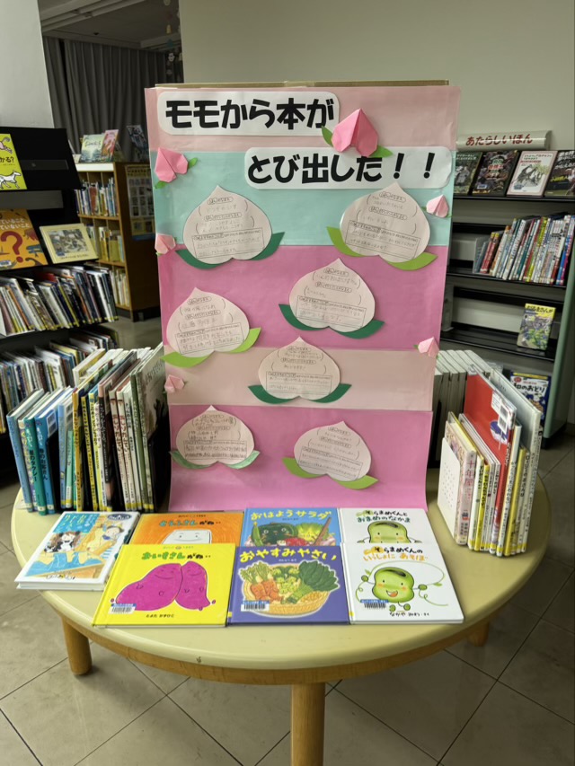 「モモから本がとび出した!!大すきな本大募集」(令和7年度こどもの読書週間行事)結果発表 2026年2月26日 岡山市立図書館おかやましりつとしょかんでは、こどもの読書週間どくしょしゅうかんに合あわせて「モモから本ほんがとび出だした!!大だいすきな本ほん大募集だいぼしゅう」を開催かいさいしました。たくさんの子こどもさんや保護者ほごしゃの方かたから、大だいすきな本ほんを紹介しょうかいしていただきました。紹介しょうかいしていただいた本ほんは、モモの用紙ようしに書かかれたおすすめのコメントと一緒いっしょに展示てんじを行おこないました。みなさんから寄よせられた「大だいすきな本ほん」をご紹介しょうかいします。 大だいすきな本ほんのいちらん 絵本えほん2025 物語ものがたり2025 その他た分類ぶんるい2025 幸町図書館さいわいちょうとしょかんの展示てんじの様子ようすその1 幸町図書館さいわいちょうとしょかんの展示てんじの様子ようすその2 西大寺緑花公園さいだいじりょっかこうえん緑みどりの図書室としょしつの展示てんじの様子ようす 浦安総合公園図書館うらやすそうごうこうえんとしょかんの展示てんじの様子ようす 灘崎図書館なださきとしょかんの展示てんじの様子ようす 御津図書館みつとしょかんの展示てんじの様子ようす 伊島図書館いしまとしょかんの展示てんじの様子ようす